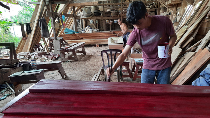 Pemilik usaha peti mati tersebut, Panjaitan mengatakan, pada masa pandemi ini memang cukup berpengaruh terhadap permintaan pembuatan peti mati.