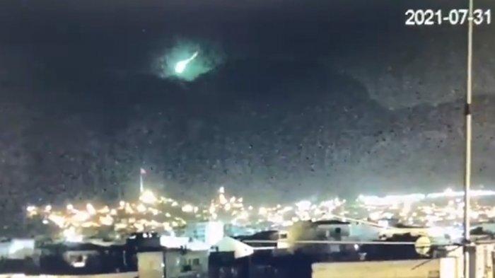 TRIBUNPEKANBARU.COM - Beredar video diduga meteor berwarna hijau terlihat jatuh di Turki, tepat di Kota Izmir.
