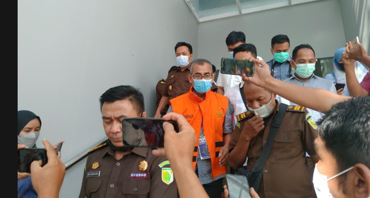 Ia baru keluar sekitar pukul 16.00 WIB. Dengan memakai rompi oranye, tampak ia digiring oleh beberapa orang jaksa ke mobil tahanan di halaman gedung Kejati Riau.