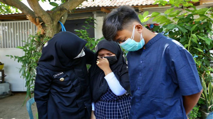 Tiga adik beradik ini menjadi yatim piatu setelah ibunda mereka yang merupakan tenaga kesehatan di Puskesmas, meninggal Kamis (24/6) karena Covid-19.