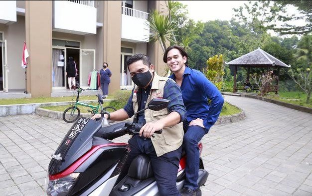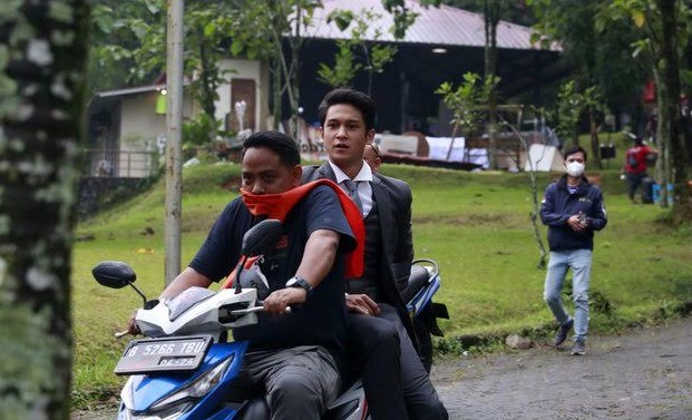 Tak ketinggalan pula Rangga Azof yang tetap menawan meskipun hanya dibonceng naik motor.