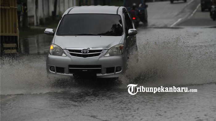 Titik genangan banjir menyebar di depan Mal Pelayanan Publik (MPP) Pekanbaru, depan Pasar Buah dan depan RS Awal Bros Pekanbaru.