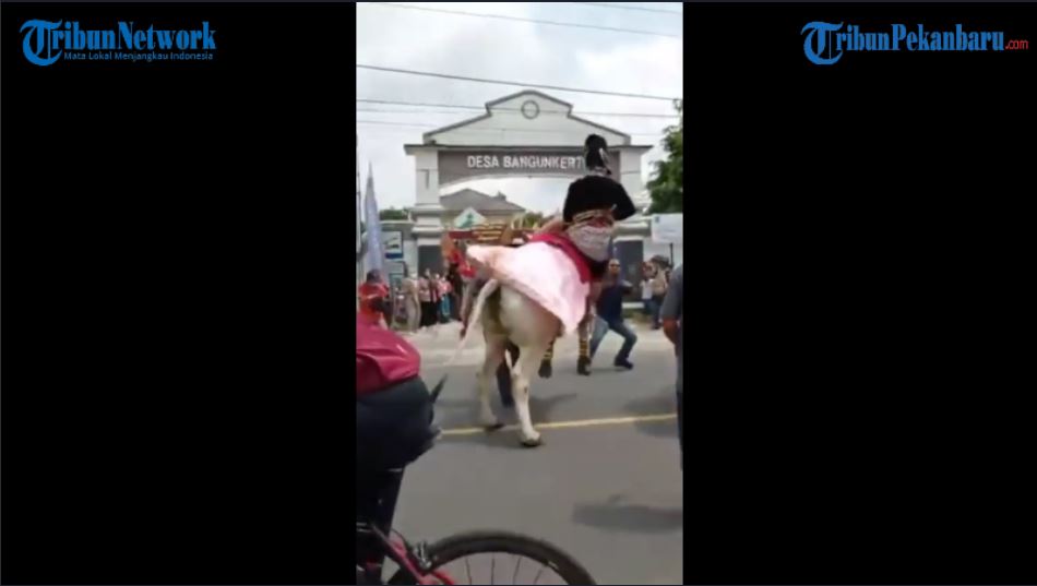 TRIBUNPEKANBARU.COM - Seekor sapi tunggangan dalam acara kirab budaya di Sleman mengamuk, Minggu (7/11/2021).