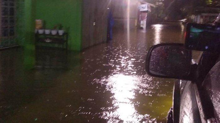Banjir merendam sejumlah titik di Bangkinang Kampar akibat guyuran hujan deras, Rabu (15/12/2021) malam.