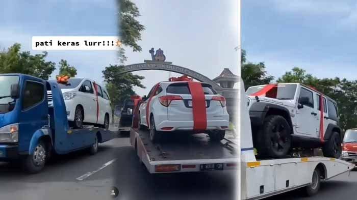 Dalam video yang diunggah akun Instagram @patisakpore, ada tiga mobil yang diarak, yaitu Jeep Rubicon, Honda HRV, dan Toyota Alphard.