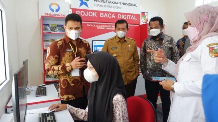 Fasilitas yang ada di dalamnya pun cukup lengkap seperti ribuan buku digital dengan berbagai judul, Wifi gratis, sofa, ruangan ber Ac, dan juga pembuatan kartu perpustakaan on the spot disana. ( Nasuha Nasution / Tribunpekanbaru.com )