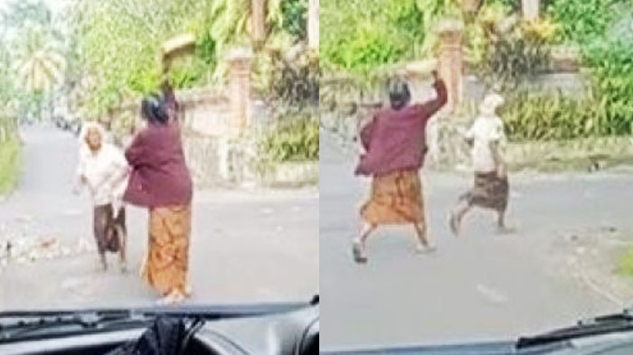 TRIBUNPEKANBARU.COM-- Viral video aksi dua nenek bersarung berantem di sebuah jalan.