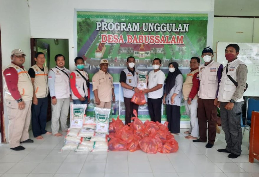 Kemudian dilanjutkan dengan mengantarkan bantuan sembako ke kantor Desa Babussalam, Kecamatan Rambah yang diterima langung oleh Kaur Perencanaan Hasyudi.