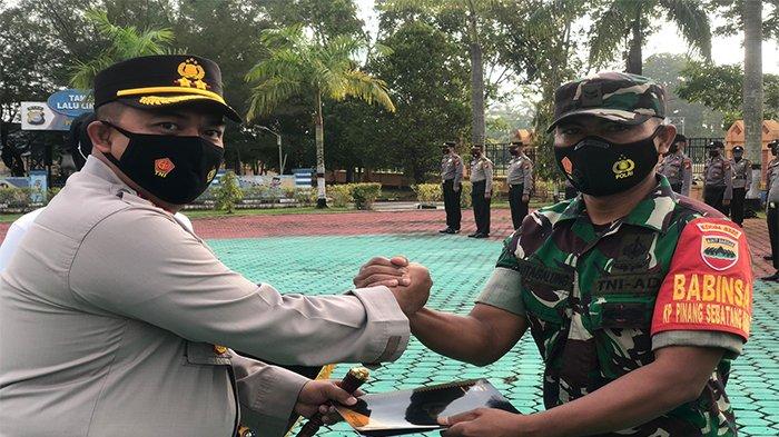 AKBP Gunar menyampaikan agar suluruh personil tetap semangat untuk terus mensosialisakan dan mengajak masyarakat untuk divaksin, tetap patuhi prokes dan jaga kesehatan. (Tribunpekanbaru.com/mayonal putra)