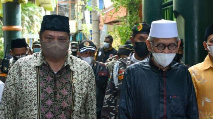 TRIBUNPEKANBARU.COM, SURABAYA - Menteri Koordinator Bidang Perekonomian Airlangga Hartarto bersilaturahim ke kediaman Rais Aam Pengurus Besar Nahdlatul Ulama (PBNU) Kiai Miftachul Akhyar di Surabaya, Sabtu (19/2/2022).