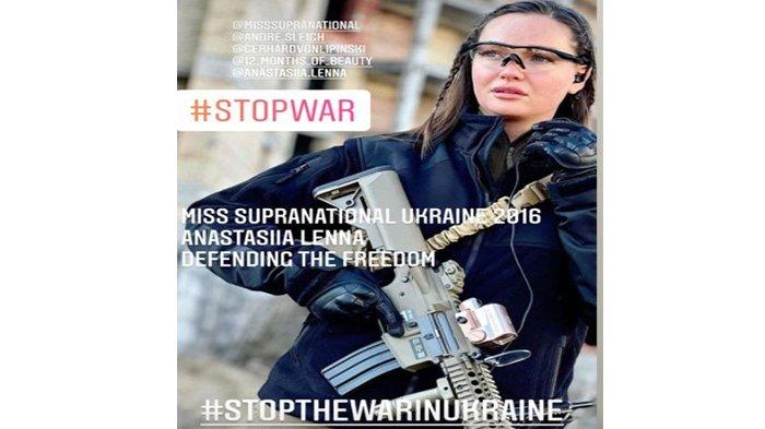 Diberitakan Dailystar, Anastasiia Lenna dimahkotai sebagai pemenang kontes nasional berusia 24 tahun pada tahun 2015 silam kini angkat senjata melawan invasi Rusia.