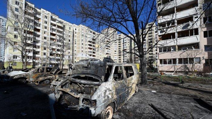 Akibat dihujani rudal, gedung pemerintahan utama, alun-alun pusat, dan permukiman penduduk di Kota Kharkiv hancur.