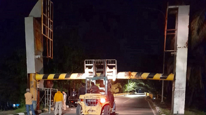 Ada Kerusakan di Bagian Pangkal, Minggu Dini Hari Petugas Copot Portal Jembatan Leighton I