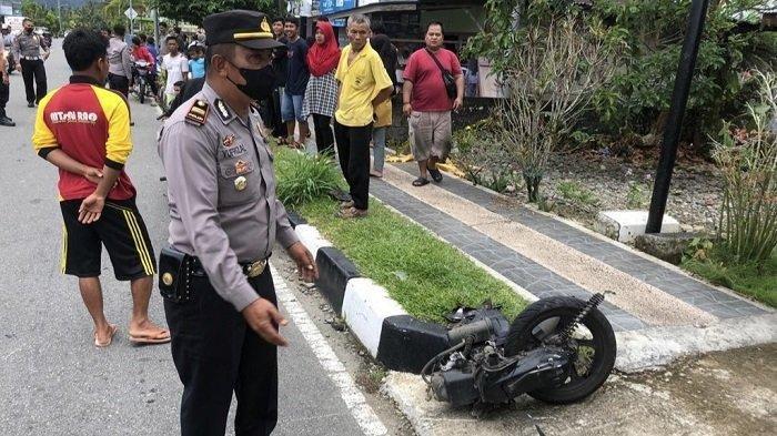 TRIBUNPEKANBARU.COM - Mesin sepeda motor skuter metik (Skutik) Yamaha Mio terlepas akibat terlibat kecelakaan dengan minibus Toyota Rush di Kabupaten Pasaman, Provinsi Sumatera Barat (Sumbar), Senin (7/3/2022).