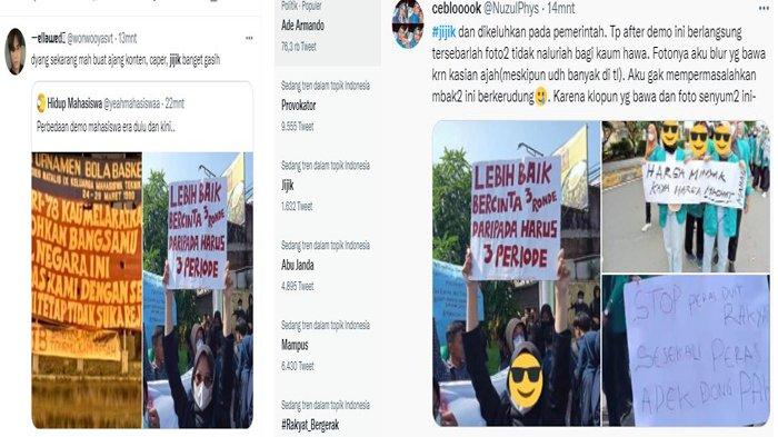 Sementara, tweet terkait dengan jijik mengunggah foto cewek-cewek yang membawa poster berisi kata sarkasme .
