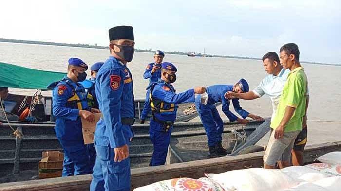 TRIBUNPEKANBARU.COM, KEPULAUAN MERANTI - Personil dari Satuan Polisi Perairan dan Udara (Satpolairud) Polres Kepulauan Meranti, Selasa (19/5/2022) sore, berbagi takjil kebutuhan berbuka puasa kepada para pelaut di sekitar perairan Selatpanjang.