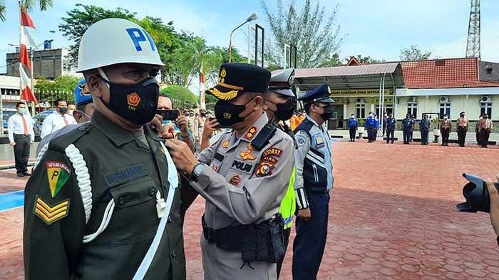 TRIBUNPEKANBARU.COM, DUMAI - Kapolres Dumai AKBP Mohammad Kholid memimpin apel gelar pasukan Operasi Ketupat Lancang Kuning 2022, Jumat (22/4/2022) yang dipusatkan di Polres Dumai.