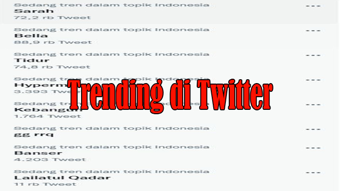 TRIBUNPEKANBARU.COM, PEKANBARU - Trending di Twitter malam ini ada beberapa topik dan tagar yakni Sarah, Bella, Tidur, Kebangun, Lailatul Qadar .