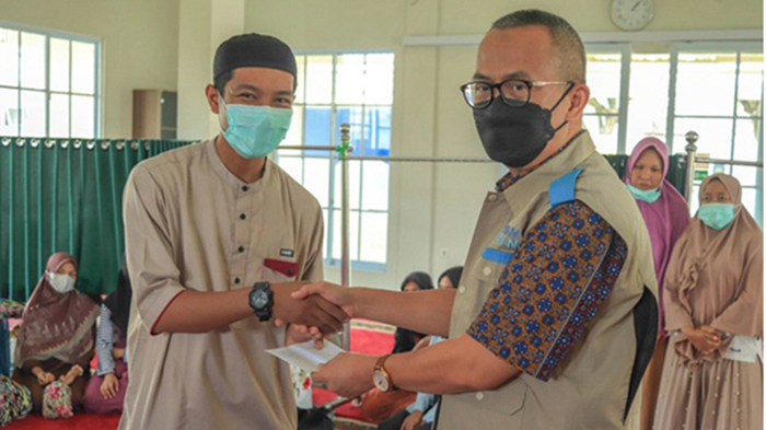 YBM PLN UIP Sumbagteng menyerahkan bantuan kepada kaum dhuafa pada Bulan Ramadan 1443 H ini