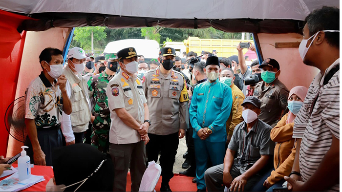 TRIBUNPEKANBARU.COM, PEKANBARU- Kapolda Riau Irjen Pol Mohammad Iqbal bersama sejumlah pejabat dari jajaran Forum Komunikasi Pimpinan Daerah (Forkopimda) melakukan peninjauan ke pos terpadu di perbatasan Riau - Sumatera Utara (Sumut), di Bagan Sinembah, Kabupaten Rohil, Jumat (29/4/2022).