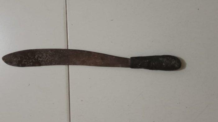 Pelaku juga mengeluarkan sebilah parang pendek lalu memukul korban dengan menggunakan gagang parang tersebut, lalu kabur dengan membawa kunci motor korban.