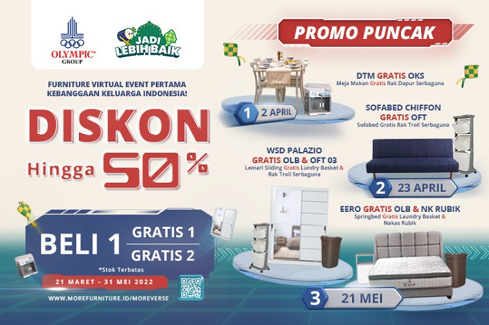 Untuk informasi selengkapnya, Anda dapat mengakses website www.morefurniture.id/moreverse atau mengunjungi sosial media (sosmed) Olympic di Instagram @morefurniture.id, @Olympicfurniture.id, dan @Olymplast. Sampai bertemu di Moreverse!
