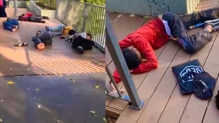 Dilansir TribunnewsBogor.com dari video yang diunggah tersebut, ada sekitar sembilan remaja yang tidur terkapar di atas jembatan.