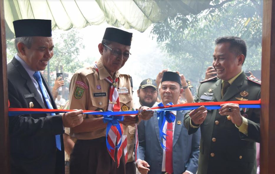 Komandan Kodim 0313/KPR Letkol Arh. Mulyadi, S.IP dan Ketua Kwarda Gerakan Pramuka Riau Kasiarudin meresmikan Sanggar Pramuka Saka Wira Kartika