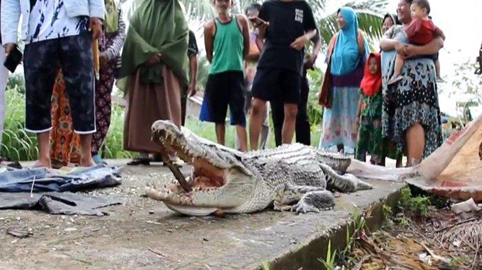 Osip menambahkan, buaya tersebut dinyatakan mati setelah lima jam berhasil di pancing dan evakuasi warga sehingga menjadi tontonan warga.