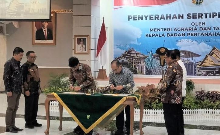 Tampak hadir dalam kegiatan itu, Menteri ATR/BPN Republik Indonesia, Hadi Tjahjanto, Gubernur Riau, Syamsuar, Chief Operating Officer Minamas Plantation, Azmi Jaafar dan Yustinus L. Setyo Putro, Direktur PT BNS di Rumah Dinas Gubernur Riau, Jalan Diponegoro.