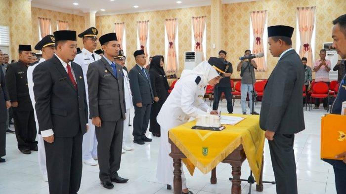 Total sebanyak 21 pejabat baru pimpinan tinggi pratama dan pejabat administrasi yang dilantik di kantor BPKAD, Bagansiapiapi, Rohil, Riau, Kamis (6/4/2023)