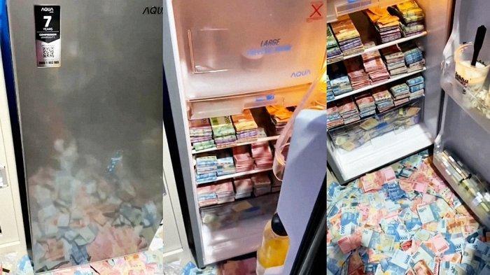 Dalam video yang diunggah akun Instagram @yogyakarta.keras, tampak kulkas penuh dengan isi uang.