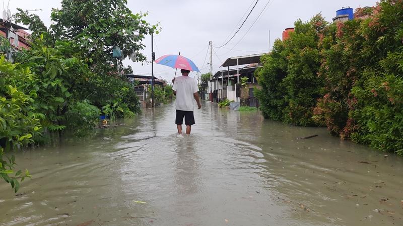 Banjir ini akibat luapan drainase di sekitar Jalan Datuk Tunggul.