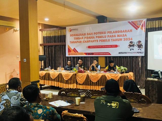 “Tujuan kita adakan sosialisasi ini adalah memberikan edukasi dan pemahaman kepada para penghulu atau kepala desa dan kepala sekolah (ASN) supaya tidak menyalahgunakan jabatan dan kewenangannya untuk menguntungkan salah satu peserta Pemilu,” katanya.