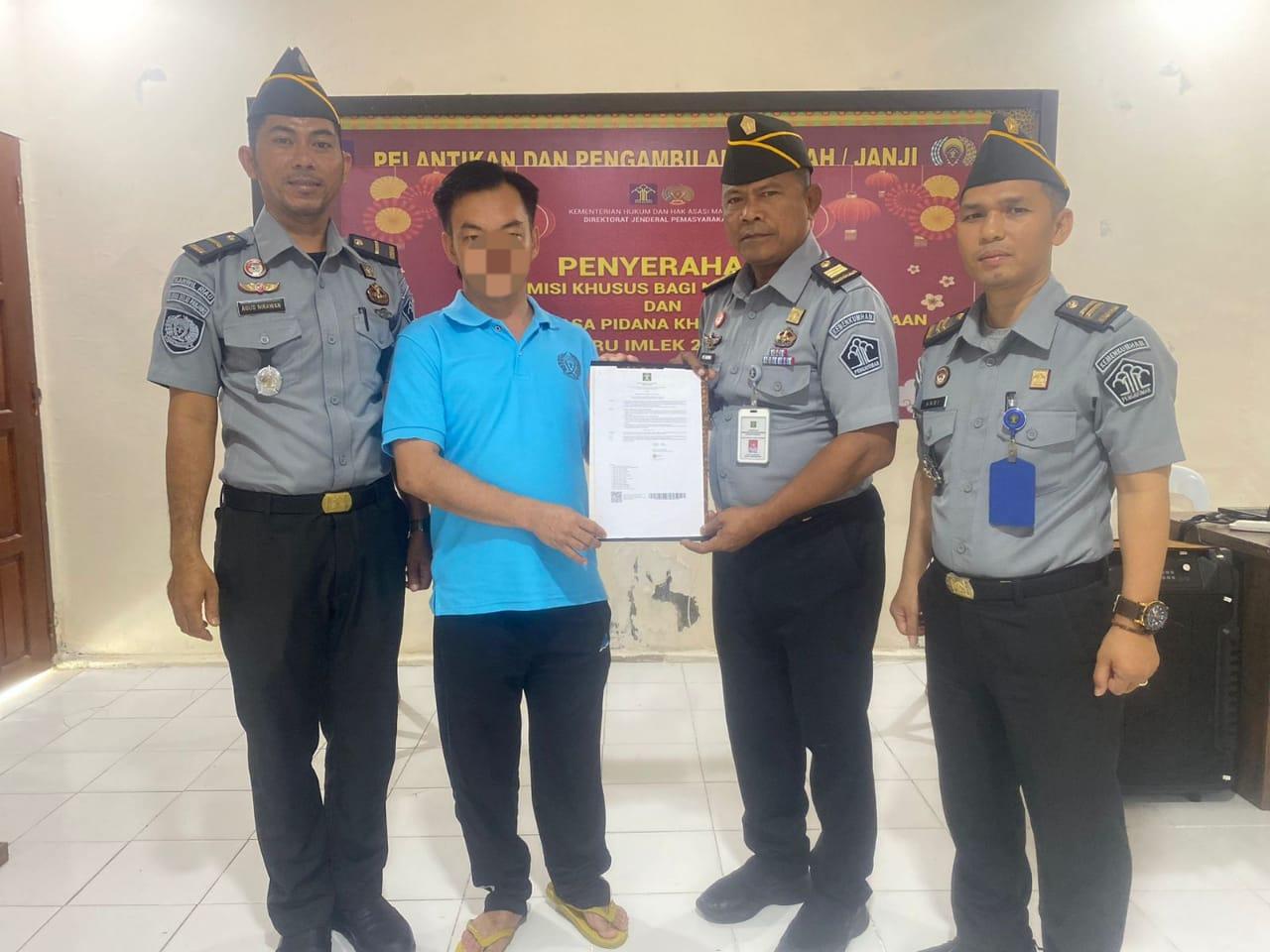 Kanwil Kemenkumham Riau memberikan remisi Imlek 2024 kepada satu warga binaan di Lapas Kelas II B Selatpanjang.