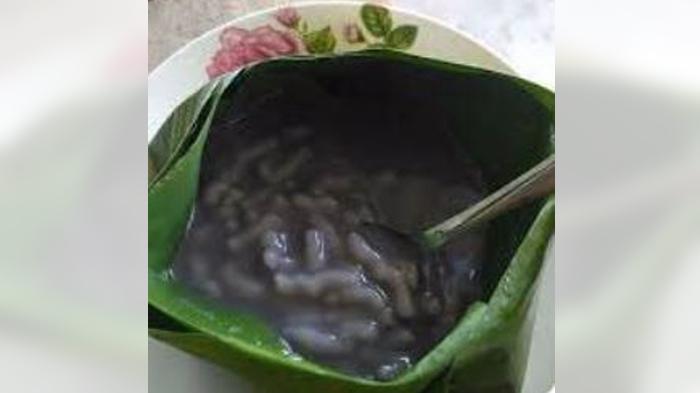 Bubur konji barayak menyerupai cendol bertekstur kenya yang diberi kuah santan kental dengan rasa manis.