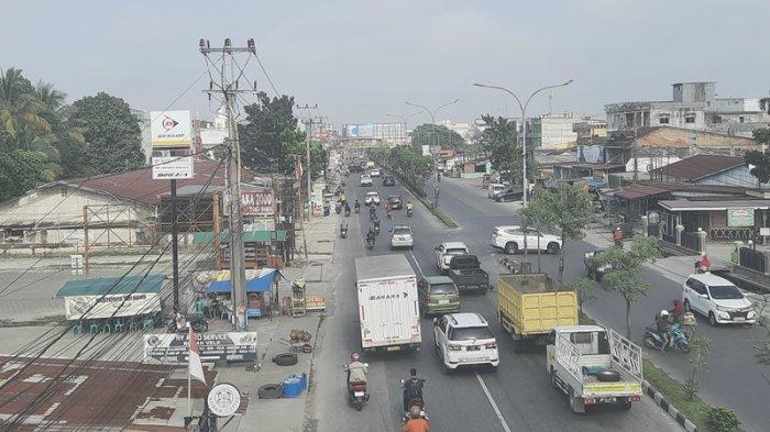 Banyak pengendara yang tetap melanjutkan perjalanan meskipun jarak pandang terganggu. (Tribunpekanbaru.com/Alexander)