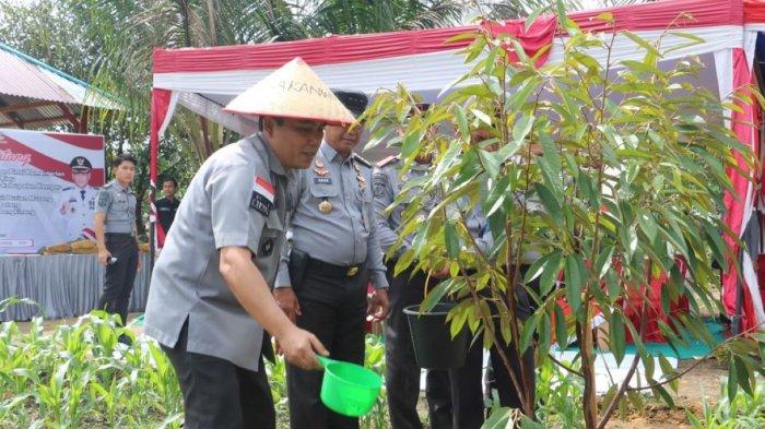 Lapas Kelas IIA Bangkinang menjadi pilot project ketahanan pangan ditandai dengan penanaman 100 bibit Durian Musang King.
