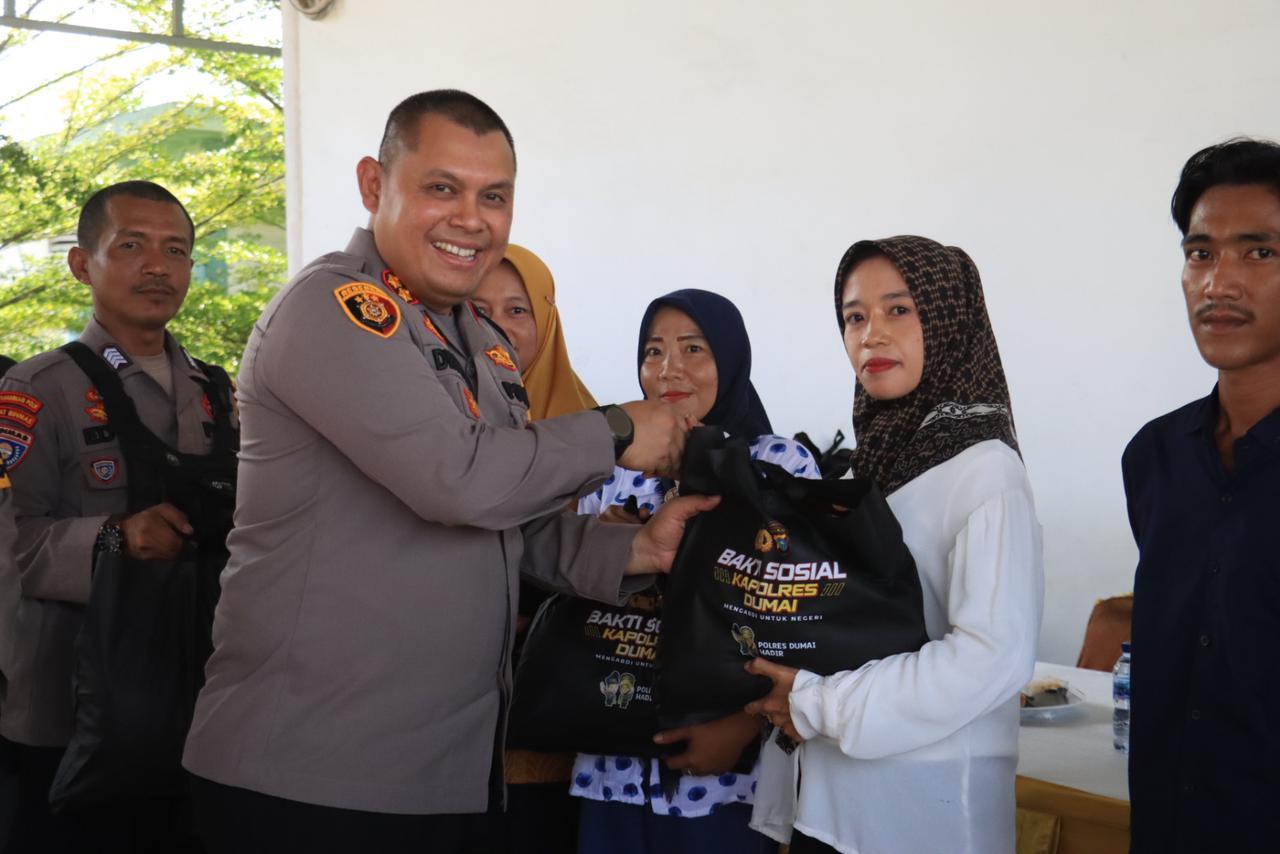 AKBP Dhovan mengaku sebagai bentuk nyata sinergi dengan masyarakat, Polres Dumai membagikan 150 paket sembako kepada warga yang membutuhkan.