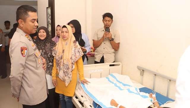 Kapolres menjenguk korban ditemani Kasat Reskrim AKP Budi Winarko dan Kasat Lantas AKP Fandri disambut pihak RSUD Puri Husada Tembilahan Asnawi.