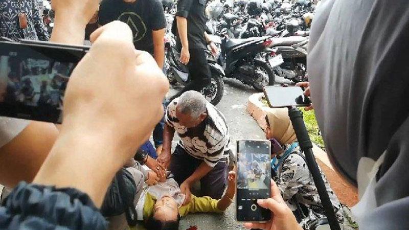 Insiden ini terjadi usai Agus menjalani sidang perdana di Pengadilan Negeri Mataram dengan agenda pembacaan dakwaan.