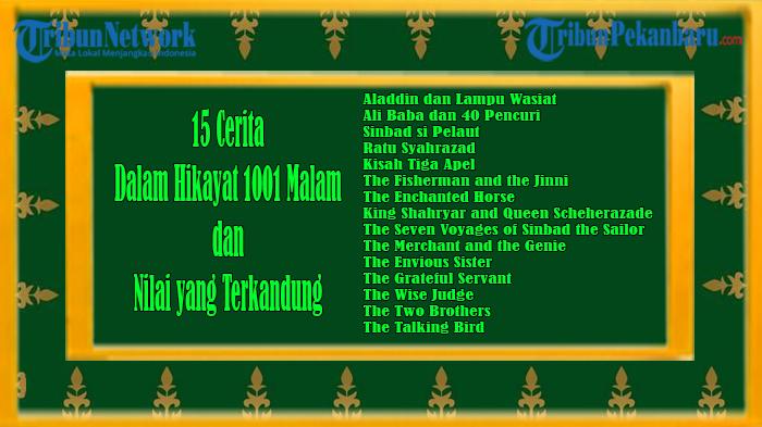 TRIBUNPEKANBARU.COM, PEKANBARU - Berikut 15 cerita dalam hikayat 1001 Malam lengkap dengan nilai yang terkandung untuk dijadikan pelajaran mulai dari cerita Aladdin dan Lampu Wasiat hingga cerita The Talking Bird .