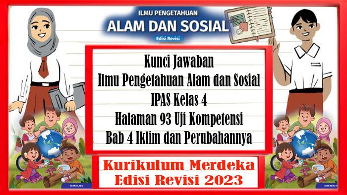 TRIBUNPEKANBARU.COM, PEKANBARU - Berikut kunci jawaban IPAS kelas 4 halaman 93 Uji Kompetensi Bab 4 Iklim dan Perubahannya sesuai buku paket Ilmu Pengetahuan Alam dan Sosial untuk SD dan MI Kurikulum Merdeka edisi revisi 2023 terbitan Kemendikbudristek.