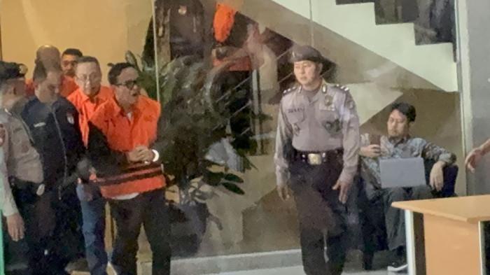 Dia berjalan didampingi penyidik KPK. Tak hanya Noel, beberapa orang juga terlihat mengenakan rompi tahanan dengan tangan diborgol.