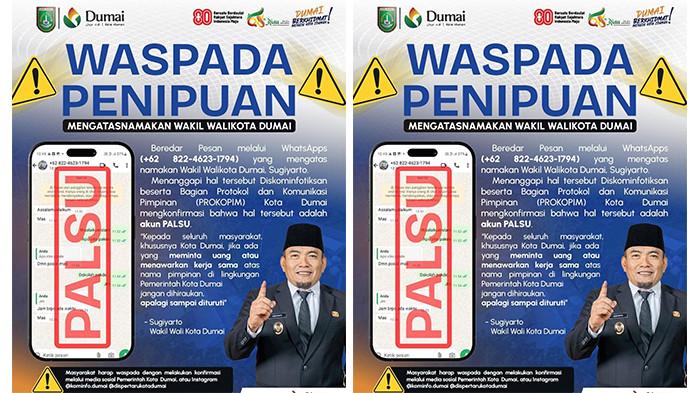 WASPADA PENIPUAN - Kasus penipuan dengan modus mencatut nama pejabat publik kembali terjadi di Kota Dumai.