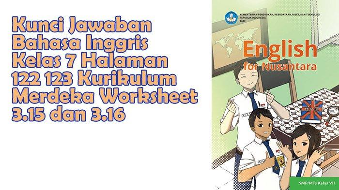 TRIBUNPEKANBARU.COM -Inilah Kunci Jawaban Halaman 122-123 Bahasa Inggris Kelas 7 SMP/MTs Kurikulum Merdeka Worksheet 3.15 - 3.16.