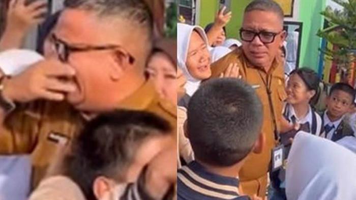 "Tangis haru murid SMP Negeri 1 setelah mengetahui kepala sekolahnya diganti," tulis berbagai akun media sosial dilihat Selasa (16/9/2025).
