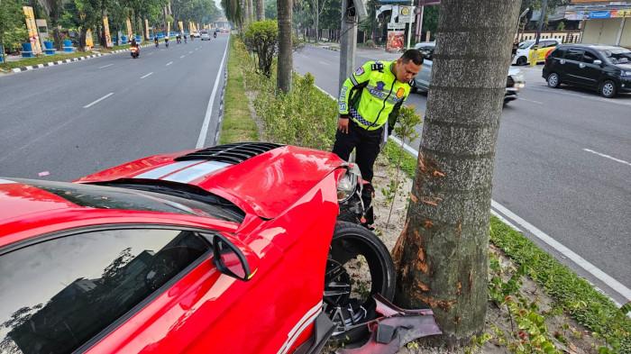 Mobil Ford Mustang Tabrak Pohon di Pekanbaru, Diduga Ngebut dan Hilang Kendali