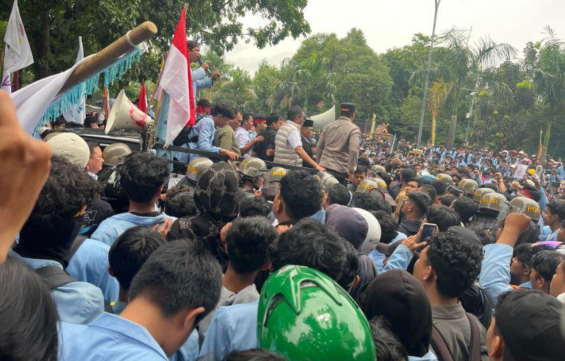 Demo Ribuan Mahasiswa Ancam Duduki Kantor DPRD Riau, Pimpinan Dewan Akhirnya Menyerah Temui Massa