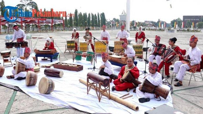 Grup Perkusi Bertuah Akshara Sympony (BAS) menunjukan kebolehananya didepan para pngunjung Car Free Day (CFD) Pekanbaru Jalan Jendral Sudirman